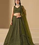 Mehendi Georgette Sequins Thread Embroidered Lehenga Choli