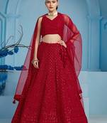 Red Georgette Sequins Thread Embroidered Lehenga Choli