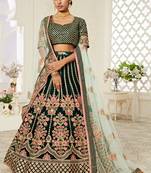 Green Velvet Embroidered Lehenga With Thread Embroidered Blouse & Light Green Net Dupatta