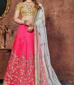 • Style : A Line Lehenga • Fabric : Silk • Work : Embroidered • Color : Pink Blouse Details