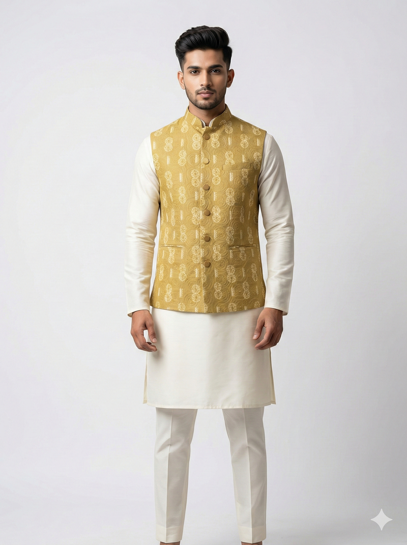 Mustard Rajputana Sunburst Nehru Jacket/Waistcoat/Bandhgala