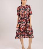 The Black Floral Printed Cotton Elbow Sleeve Dress
