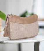 Tan Jacquard Sling Bag from Anekaant's latest Classic Collection - a vibrant and eye-catching accessory that is perfect for adding a pop of color to your outfit. It is Crafted from high-quality Cotton Canvas & Velvet decorated with tassels. It has one main compartment secured with a zip closure. It has one inner zip pocket and one outer zip pocket at the back which provides ample space to keep your essentials organized. It comes with an adjustable sling strap which allows you to wear it comfortably across your body all day long.