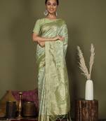 Embrace timeless charm and breathable elegance with this Light Green cotton saree, beautifully adorned with golden zari motifs and a detailed pallu. Crafted for comfort and sophistication, this saree is perfect for both daily elegance and light festive wear. Its soothing pastel tone and rich texture make it a wardrobe essential for the woman who loves grace with simplicity.