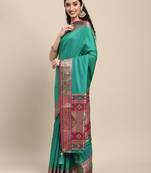 Sea Green Party Wear Saree With Rich Pallu And Contrast Zari Border