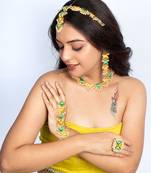 • Product Id : 4558679 • Package Details : 1 Necklace / 1 Pair Of Earrings / 1 Maang Tikka / 1 Ring / 1 Haathphool • Type : Necklace Sets • Look : Traditional • Jewellery Work : Studded Jewellery • Color : Green • Plating : Yellow Gold • Base Material : Brass • Care : Store Them In Moisture Free Areas And Keep Them Away From Water And Liquid Fragrances. Payments [+]