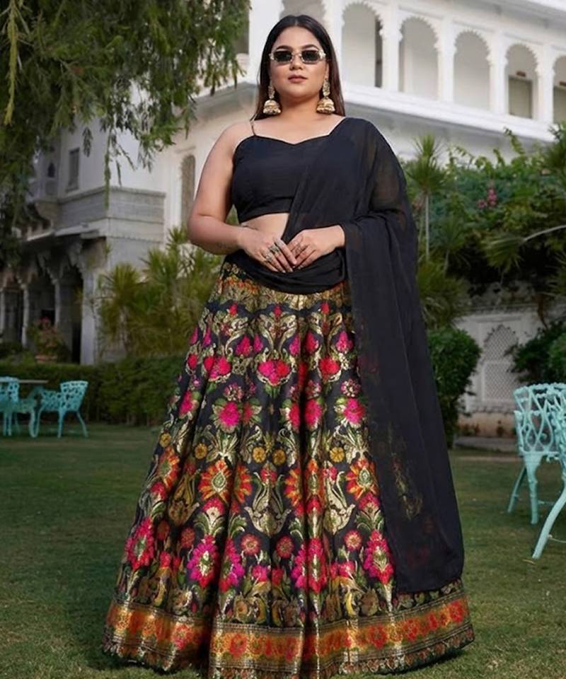Black Banarasi Silk Lehenga Choli Customizable Sizes 2 Xl To 8 Xl