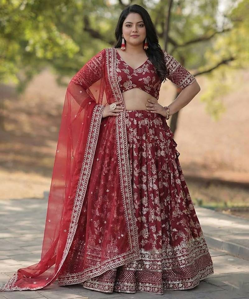$223.93$1,119.87(80% OFF)price changedSelect SizexRed Jacquard Lehenga Choli With Dupatta Customizable Sizes 2 Xl To 8 Xl$223.93$1,119.8780% OFFSize$223.93$1,119.87(80% OFF)Size$223.93$1,119.87(80% OFF)Product ID : 4679690Estimated Delivery: 11 Jan 2026NEED HELP ?Price Match Promise