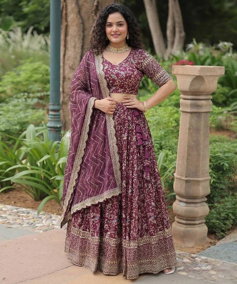 Wine Lehenga Choli With Dupatta Customizable Sizes 2 Xl To 8 Xl