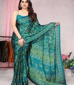 Green Chiffon Floral Printed Saree With Unstitched Blouse
