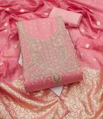 Pink Chanderi Banarasi Silk Dress Material Unstitched
