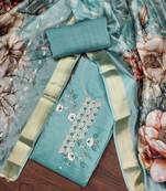 Refreshing Sea Green Roman Silk Handwork Dress Material With Dupatta Unstitched
