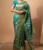 Turquoise Green Zari Woven Saree With Intricate Floral Motifs