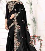 Black Embroidered Designer Soft Silk Zari Saree With Blouse