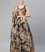 • Fabric : Organza • Color : Black • Work : Floral Print • Length : 2.5 Lehenga Details