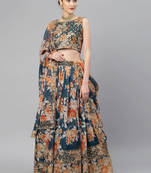 • Fabric : Organza • Color : Dark Blue • Work : Floral Print • Length : 2.5 Lehenga Details