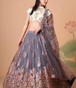 • Style : Circular Lehenga • Fabric : Net • Work : Embroidered • Color : Grey Blouse Details