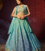 • Fabric : Organza • Work : Embroidered • Color : Sky Blue • Length : 2.5 Lehenga Details