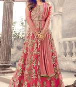 Dark Peach Embroidered Net Anarkali Salwar Suit Semi stitched