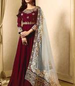 Maroon Embroidered Faux Georgette Anarkali Suit Semi stitched