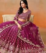 Rani Pink Georgette Sequins Zari Embroidered Lehenga Choli