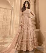 Shamita Shetty Peach Net Anarkali Embroidered Work Festival Long Salwar Suit Dupatta Semi stitched