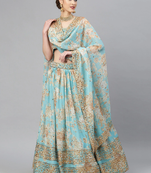 • Fabric : Organza • Color : Sky Blue • Work : Floral Print • Length : 2.5 Lehenga Details