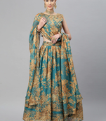 • Fabric : Organza • Color : Teal • Work : Floral Print • Length : 2.5 Lehenga Details