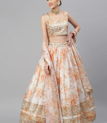 • Fabric : Organza • Color : White • Work : Floral Print • Length : 2.5 Lehenga Details