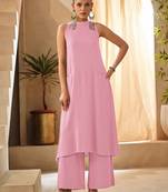 Light Pink Halter Neck Kurta And Culottes Set With Front Pocket