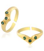 A Gold plated limited edition designer pair toe ring, Studded with Emerald panna precious gem stone, the bichiya is Adjustable band, free open size and it fits easily into any toe finger. Excellent top quality finish, with a stunning design. It combines, traditional with modern look. Pair these with Gold plated anklets from Memoir by sambhav crafts, and flaunt these elegant foot ring jewellery ornaments. They match well with all Indian and western dressess, and can be worn on all occasion. An all season wear. This also makes an excellent gifting option, for all age groups.