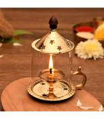 This gold copper diya adds a warm and elegant touch to your festive decorations. Made from sturdy copper, it shines brightly and stays durable for years. The cutwork star design on the cover allows the soft glow of the flame to scatter beautifully, creating a cozy and spiritual atmosphere. The attached handle makes it easy to carry or move the diya safely. You can use it during pujas, Diwali, and other celebrations to brighten up your home and spread positivity. With its timeless golden finish and simple charm, this copper diya blends tradition with style and fits effortlessly into any festive setup.
