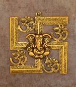 Bring a touch of elegance and artistry to your home with the eCraftIndia Lord Ganesha on Om Swastik Metal Wall Hanging. Crafted with attention to detail, this golden-colored metal wall art features a classic Om Swastik design that adds a striking visual accent to any interior.
