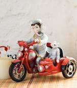 Add a playful touch to your décor with this riding Ganesha statue, featuring Lord Ganesha in a joyful avatar, dressed in contemporary attire and riding a vibrant red scooter with his loyal companion Mooshak seated in the sidecar. Crafted with intricate detail and painted in lively hues, this Shri Ganesh on scooter statue showpiece brings together tradition and whimsy in a charming, modern form. Ideal for gifting or brightening up your living space, this unique piece blends divine symbolism with fun, making it a delightful accent for shelves, desks, or festive displays.