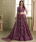 Deep Wine Net Lahenga Choli With Sequins And Thread Embroidered Lehenga Choli