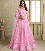 Pink Net Lahenga Choli With Sequins And Thread Embroidered Lehenga Choli