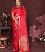 • Product Id : 4579779 • Package Details : 1 Saree/1 Blouse • Type : Satin Sarees Online • Region : India • Work : Woven • Type : Zari Woven • Look : Designer • Pallu Style : Designer Pallu • Stitching : Unstitched • Width : 44 Inches • Length : 5.5 Metres Stitching [+]