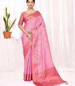 Elora Soft Silk Banarasi Woven Chex Weaving Saree (Light Pink)