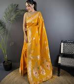Orange Silk Blend Meenakari Zari Weaving Banarasi Saree
