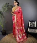 Pink Silk Blend Meenakari Zari Weaving Banarasi Saree