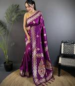 Purple Silk Blend Meenakari Zari Weaving Banarasi Saree