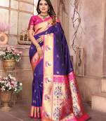 Purple Silk Blend Zari Weaving Paithani Saree With Peacock Border And Pallu