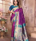 Purple Silk Blend Zari Weaving Paithani Saree With Peacock Border And Pallu