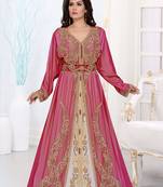 Make a grand statement at every festive gathering with this exquisite maroon kaftan, a perfect blend of regal craftsmanship and modern elegance. Tailored from flowy georgette fabric, this kaftan showcases intricate beads and zari embroidery that highlights traditional artistry while offering effortless comfort and grace. This georgette kaftan is perfect for weddings, eid celebrations, festive gatherings, family functions & evening parties. You can pair this zari work kaftan for women with statement earrings and heels for a graceful and commanding ethnic ensemble. An elegant must-have for women seeking luxurious festive wear.