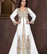 Off White Embroidered Georgette Islamic Kaftans With Hijab