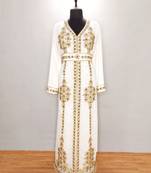 Elegant White And Gold Georgette Hand Embroidered Moroccan Kaftan