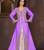 Purple Embroidered Georgette Islamic Kaftans With Hijab