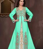 Sea Green Embroidered Georgette Islamic Kaftans With Hijab