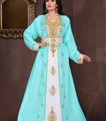 Turquoise Georgette Embroidered Moroccan Kaftan With Hand Embroidery