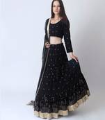 Black Embroidered Georgette Lehenga Choli With Dupatta